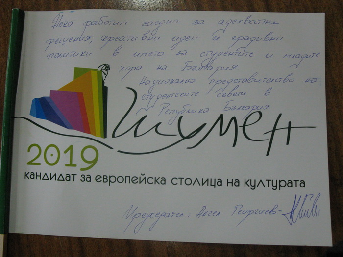 PR експертът сподели мнението си в лекция по проекта „Шумен – живият град". Изпълнението и промотирането на дейностите по този проект се реализира от „М3" ООД – София, след спечелен конкурс. Инициативите по проекта са в подкрепа на кандидатурата на Шумен за европейска столица на културата през 2019 г.