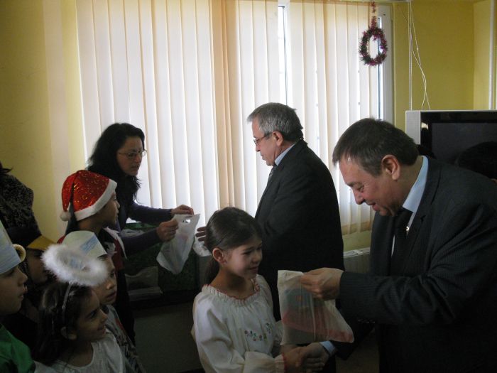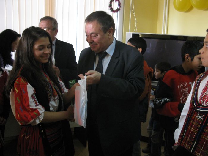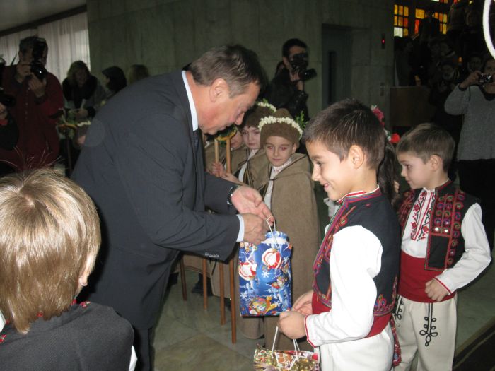 В края на тържеството градоначалникът подари коледни подаръци на децата.