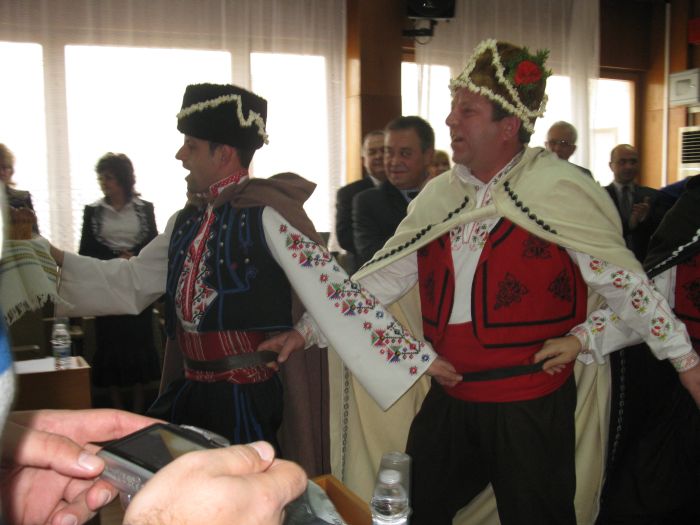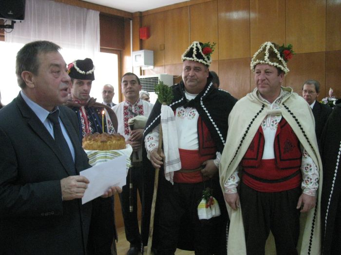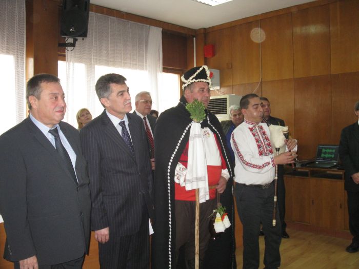 Коледари от с. Дибич гостуваха днес на последната за годината сесия на Общинския съвет в Шумен. В своите наричания те пожелаха здраве и повече пари в хазната. Кметът Красимир Костов по стародавен обичай ги дари с пита, към която добави и парични знаци. Финансова подкрепа на самодейците и благодарност за добрите думи от името на съветниците добави и председателят на местния парламент проф. Георги Колев.