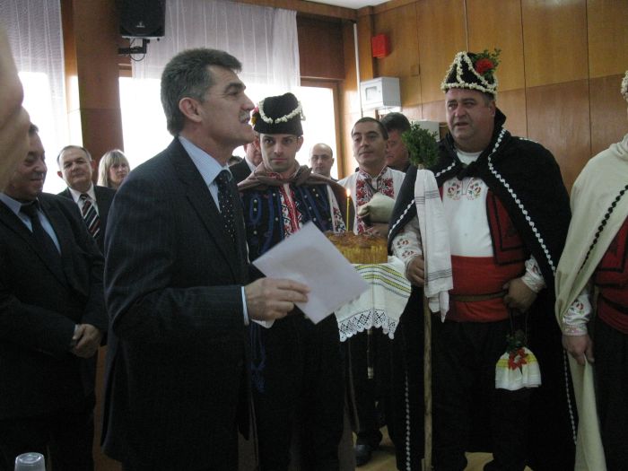 Коледари и сурвакари пожелаха късмет на кметския екип