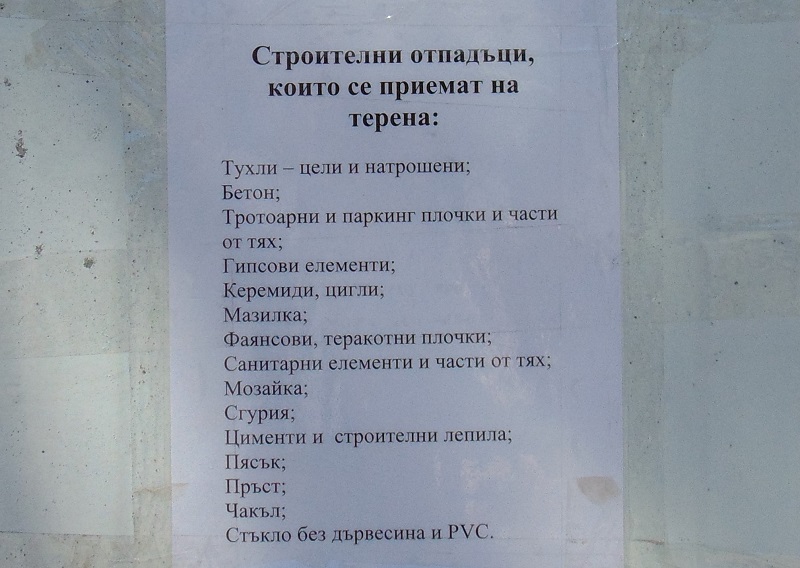 Списък на строителните отпадъци, които се приемат на терена, е поставен на входа на площадката. Ако отпадъкът не е от разрешените, които се събират на територията на бившето военно поделение, гражданите ще получат указания за определените места, където могат да го предадат.