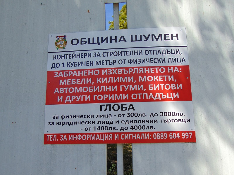 Шест нови контейнера за събиране на строителни отпадъци от домакинствата са разположени на обособения терен в района на Тежкия полк, който беше изцяло почистен. Съдовете са закупени от Община Шумен и заменят досега ползваните контейнери на фирма „РТК“. Те са тип „лодка“ и са специално предназначени за такъв вид отпадък.