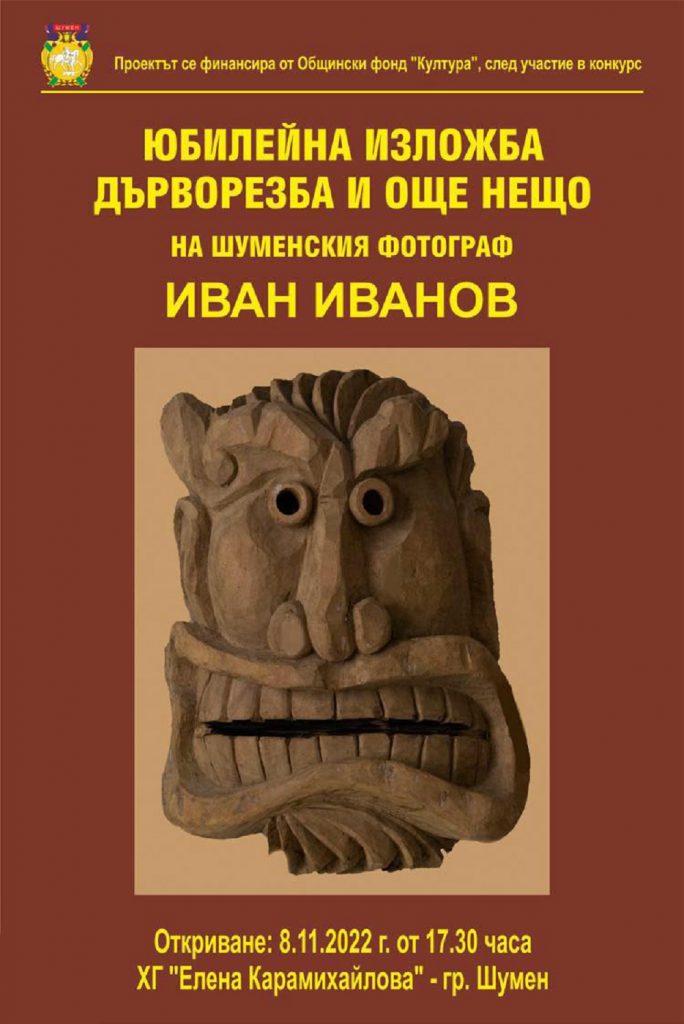 Изложба под мотото „Дърворезба и още нещо“ на шуменския фотограф Иван Иванов ще бъде представена в Художествената галерия „Елена Карамихайлова“. Откриването е на 8 ноември, вторник, от 17.30 часа на втория етаж в галерията.