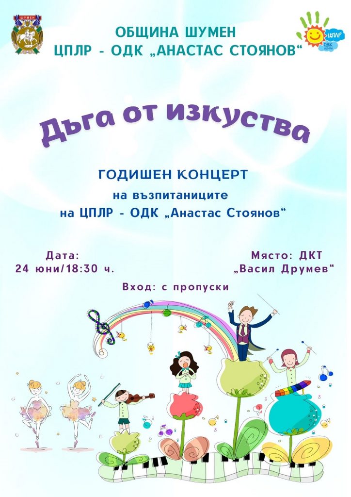 Традиционният годишен концерт на възпитаниците на ЦПЛР-ОДК „Анастас Стоянов“ ще се състои тази вечер, петък, 24 юни. Той ще се проведе в голямата зала на Драматично-кукления театър „Васил Друмев“ от 18.30 часа.