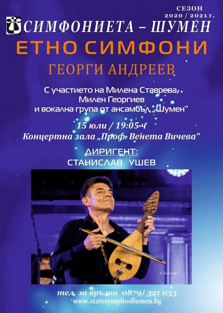 Симфониета – Шумен поднася на своите почитатели програма с авторска музика от Георги Андреев. Публиката ще чуе произведения, които обединяват в себе си класическа музика и типичните за страната ни ритми и фолклорни стилове. Композициите на Г. Андреев се отличават с изключителна мелодичност, ярък музикален характер и наситена хармония.