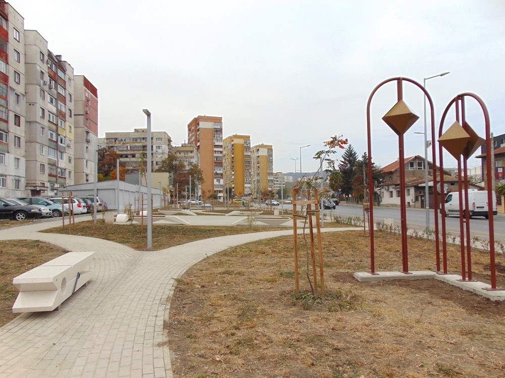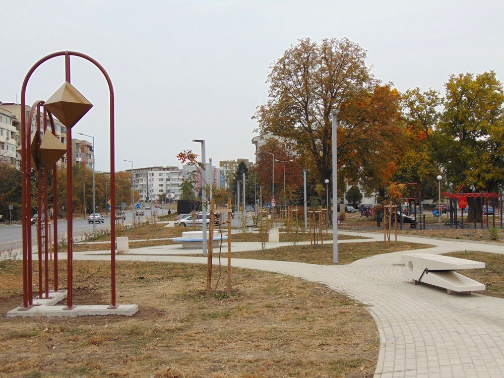 Художествената конструкция и новата паркова мебел придават модерен облик на тази част от пространството и го превръщат в привлекателно място за отдих и почивка.