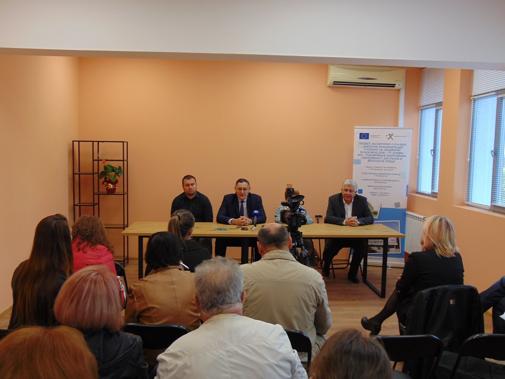 Кметът Любомир Христов представи пред медиите обновената сграда на Общинския младежки дом в Шумен. Заедно с него бяха и петимата му заместници – Татяна Костова, Росица Антонова, Светлана Маркова, Боян Тодоров и Найден Косев, както и проектантът арх. Виолета Узунова и представители на фирмата изпълнител „Автомагистрали – Черно море“.