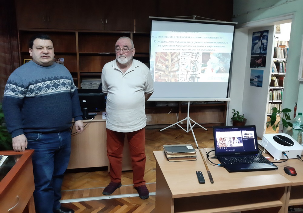 Председателят на НЧ „Добри Войников – 1856“ Анатоли Стоянов и членовете на настоятелството се срещнаха с реставратора д-р Димчо Радев, за да обсъдят възможностите за реставрация на уникалната възрожденска завеса, поставена на сцената в концертна зала още при откриването на читалището.