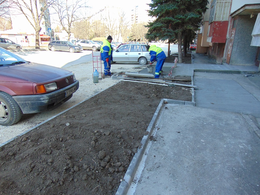 Предстои цялостно обновяване на междублоковите пространства и асфалтиране на двата паркинга пред жилищните сгради на ул. „Владайско въстание“ № 5 и 7, включени в списъка за текущи ремонти през тази година. Вече са изградени новите бордюри и тротоари, направена е основата от трошен камък и предстои полагането на асфалтовата настилка. Общината предостави черноземна пръст за оформяне на пространства за градинки, които живеещите в двата блока ще поддържат. Пак в района ще бъде асфалтиран и участък по бул. „Мадара“, където железопътната линия пресича булеварда. Там старите и изкривени релси, които създаваха предпоставки за аварии и пътно-транспортни произшествия, са премахнати и на тяхно място ще бъде положен асфалт.
