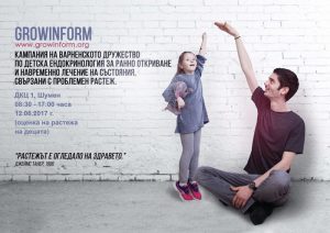 Община Шумен, варненското дружество по детска ендокринология ВАПЕД и „Сдружение за инсулиновите помпи“ организират кампания за ранно откриване и навременно лечение на състояния, свързани с отклонения в растежа. Тя ще се проведе на 12 юни от 8.30 до 17.00 часа в ДКЦ1 в Шумен. Прегледите и оценката на растежа на децата ще бъдат извършени от  доктор Росица Стойчева – детски ендокринолог.