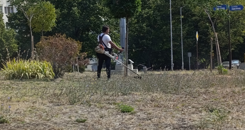 В района на Съдебната палата днес се косят механично тревните площи, както и в района на Военния клуб (ДНА – Шумен).