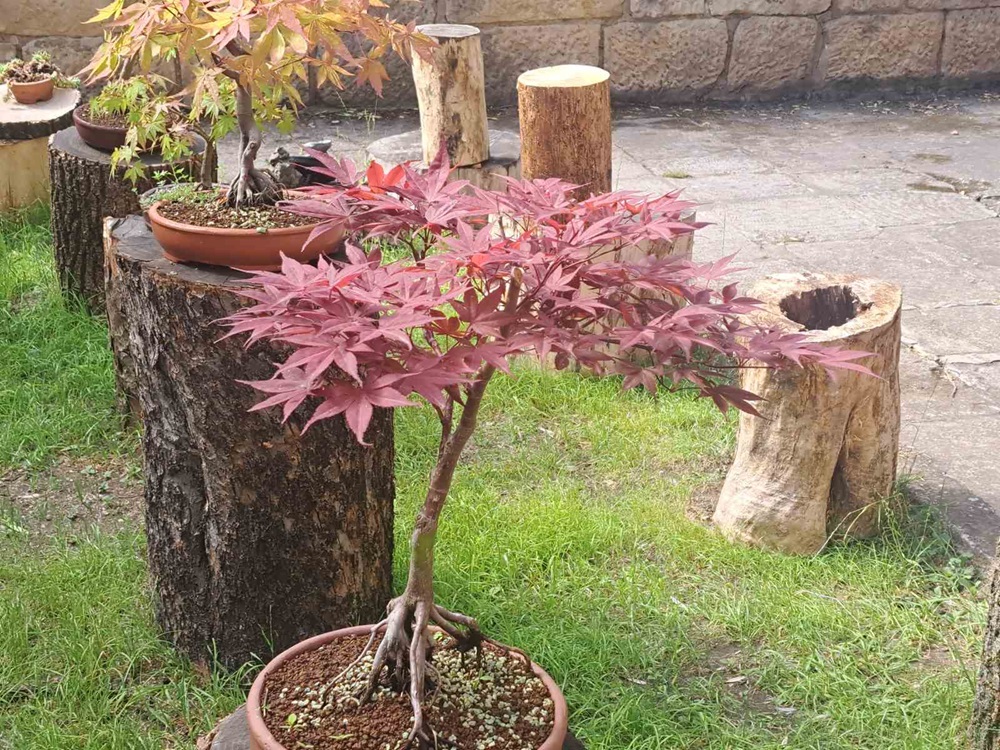 Радко Колев допълни, че в градината към момента има растения на 48 години, голяма част са на над 30-годишни, има и такива на над 20 години, както и току-що засадени. В градината са събрани миниатюрни дървесни видове, отгледани според изискванията на бонсай изкуството. Сред експонатите има и местни видове като напр. джанка, има маслини, цафтящи видове, както и някои от 40-те известни на други континенти видове кленови дървета.