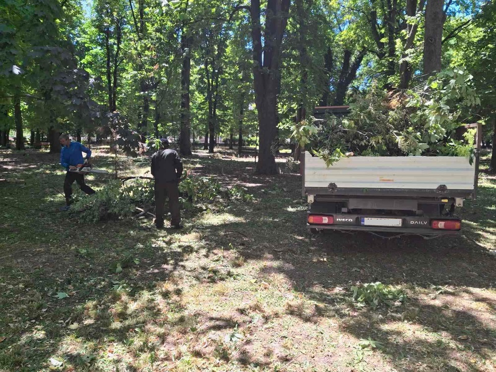 Общо до момента от улиците на града са изнесени около 15 тона дървен отпадък – трупи, клони, дървета, повалени от бурния вятър снощи. Товарните автомобили на общинските предприятия са направили над 20 курса, като в момента продължават да работят екипите на ОП „Чистота“, събиращи листна маса и малки клони.
