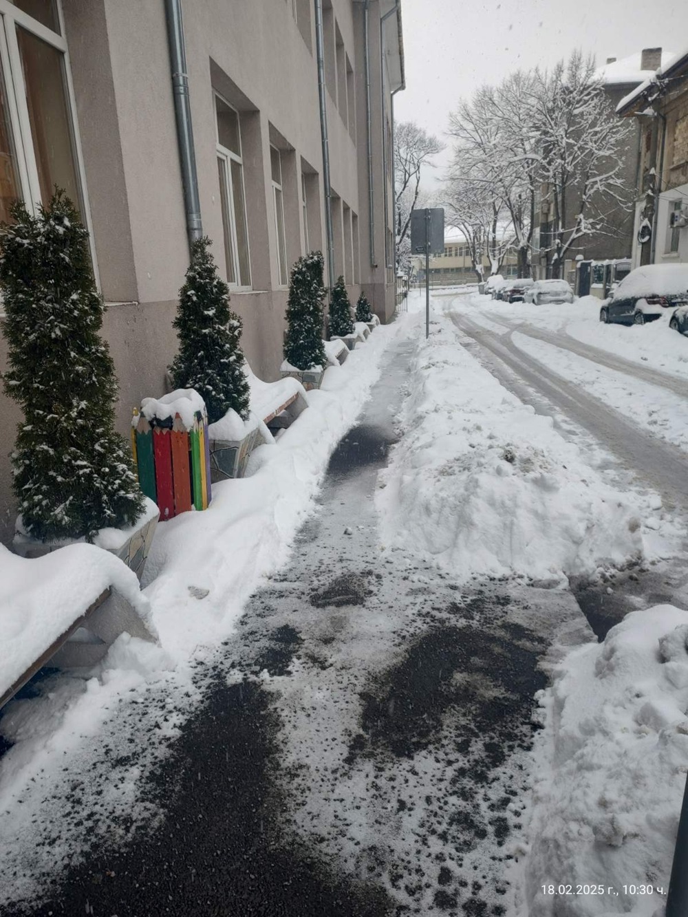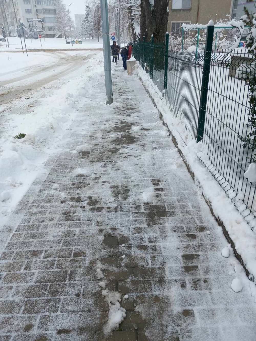 След сигнал от по-рано днес за непочистен тротоар пред СУ „Сава Доброплодни“, снегът от там вече е отстранен и площите са проходими.