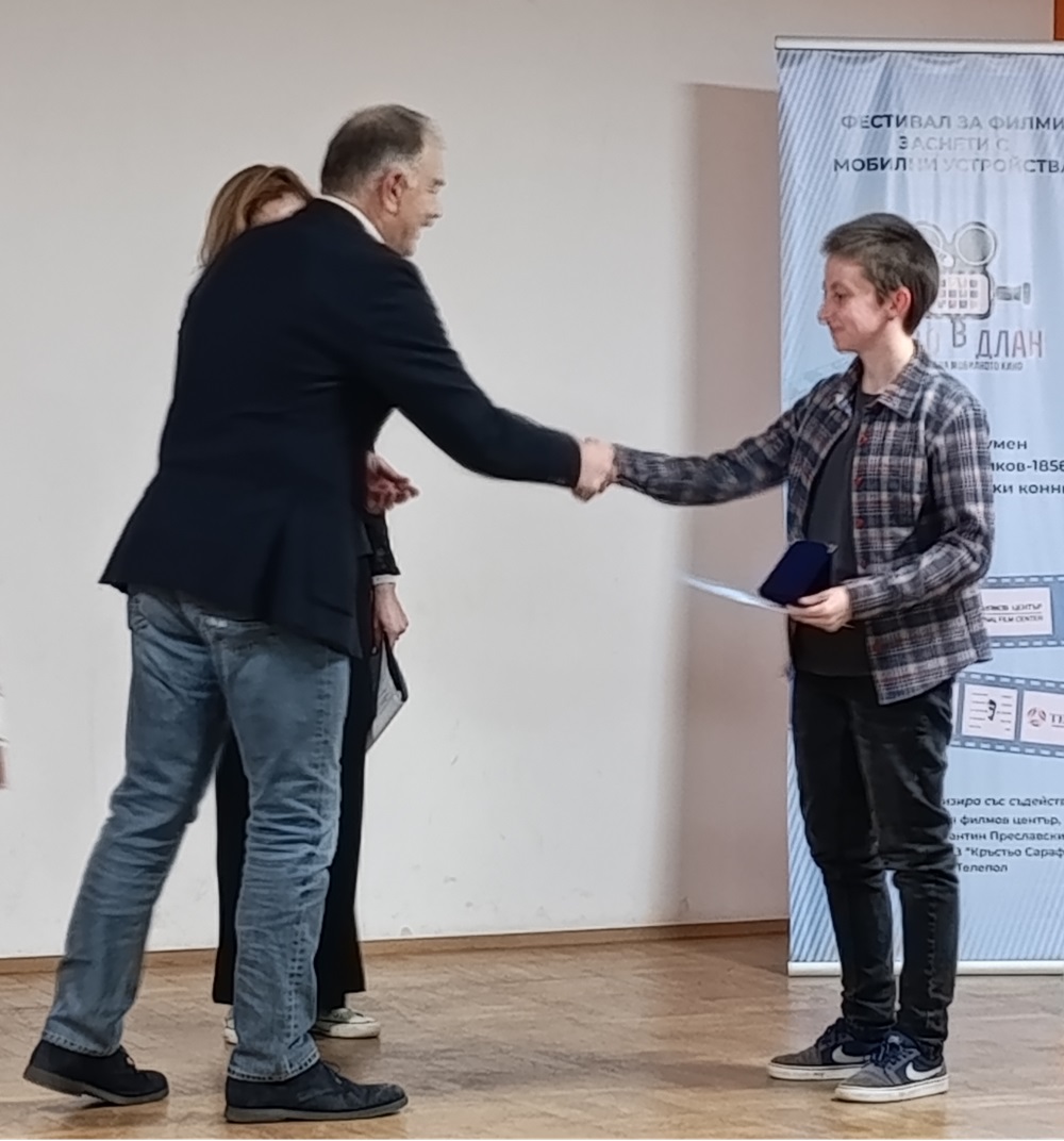 3. Награда за документален филм (плакет, грамота и смартфон) за филма „Българският Йерусалим“ на Киноклуба към СУ „Панайот Волов“, Шумен с ръководител Деян Герговски.