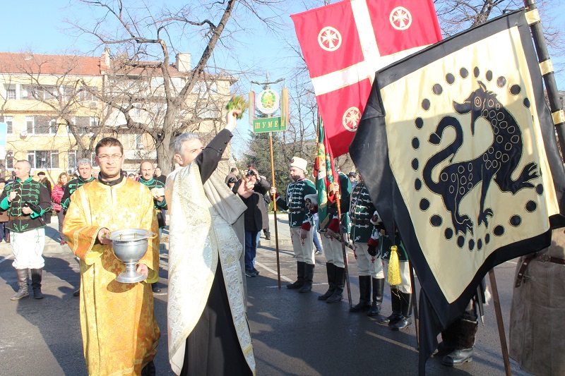 По традиция на християнския празник Богоявление бяха осветени бойните знамена на военните формирования в Шумен.Ритуалът започна в 11.00 часа пред сградата на общината с участието на почетни роти от Шуменския гарнизон, членове на Националното дружество„Традиция“ – клон Шумен и на Родолюбивия комитет „Крум Страшни“.
