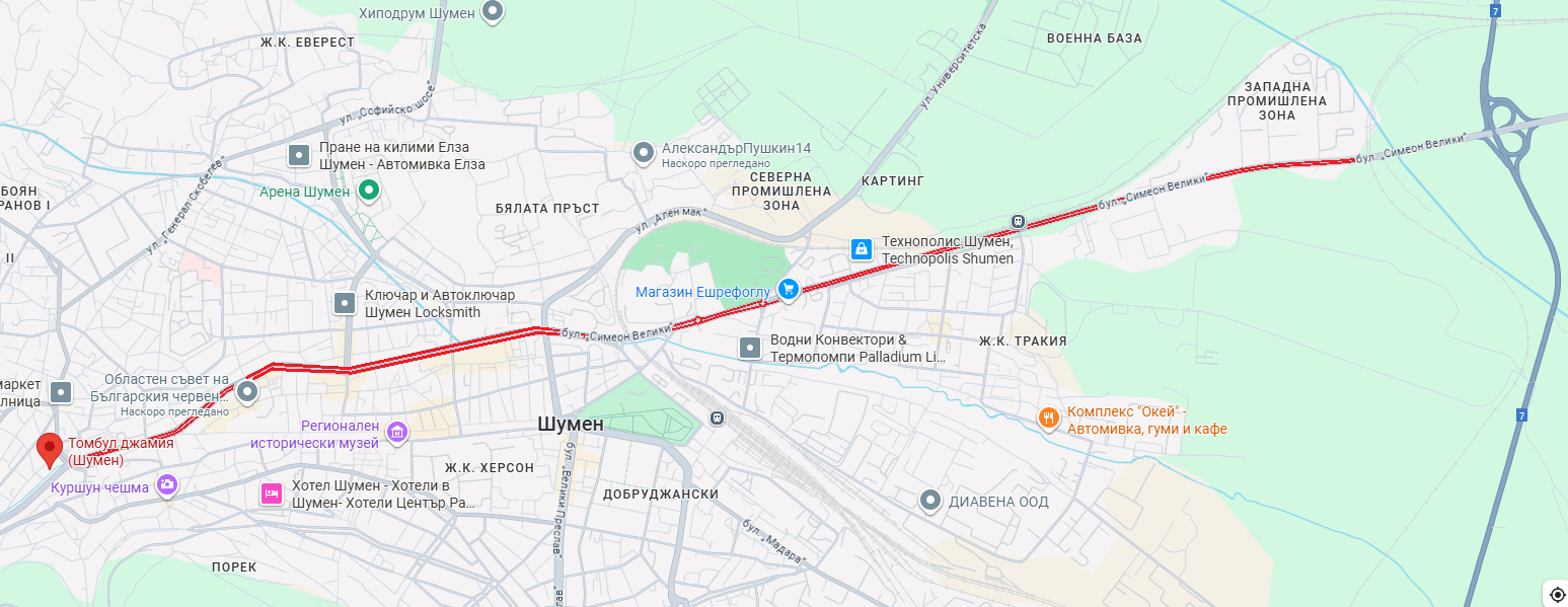 - По отношение на смяна на водопровода и ремонт на ул. „Университетска“ се въвежда временна организация на движение от 15 август до 22 октомври 2025 г. С ПЪЛНО ЗАТВАРЯНЕ на пътното платно само в определен участък – от кръстовището с ул. „Александър Пушкин“ до кръстовището с ул. „Преспа“ (ЖП прелез). За всички работещи и живеещи в района, както и за Шуменския университет, ще се осигури свободен достъп (в условия на ремонт). Обходният маршрут ще се осъществява по бул. „Симеон Велики“ и ул. „Преспа“.