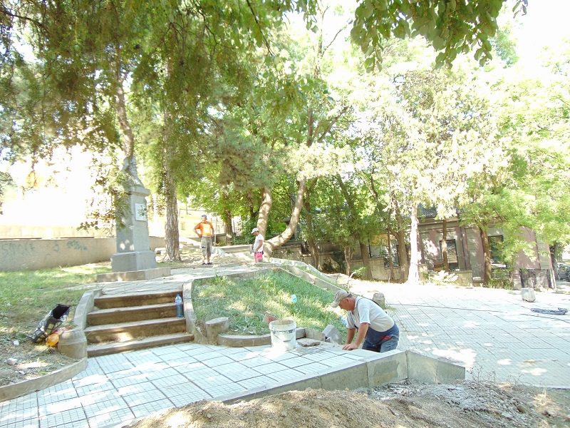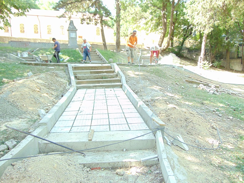 Продължава ремонтът на подхода към храма “Свето Възнесение Господне”. Там също се изграждат нови стъпалата и се възстановяват площадките около паметника митрополит Симеон.