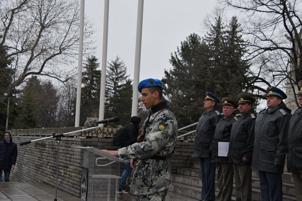 От името на всички резервисти, които положиха клетва, слово произнесе редник Димитров. „Уважаеми колеги, от днес започва пътят на нашата професионална реализация, затова е необходимо всеки от нас с увереност да продължи това, което е започнал. Днешният ден е потвърждение за избора ни да тръгнем по трудния професионален път на военнослужещия от Българската армия. Господа командири и преподаватели, уверявам ви, че дълбоко осъзнаваме дълга си пред родината и отговорността, която поемаме. Готови сме да защитаваме родината и да пазим нейния суверенитет.“, посочи Димитров.