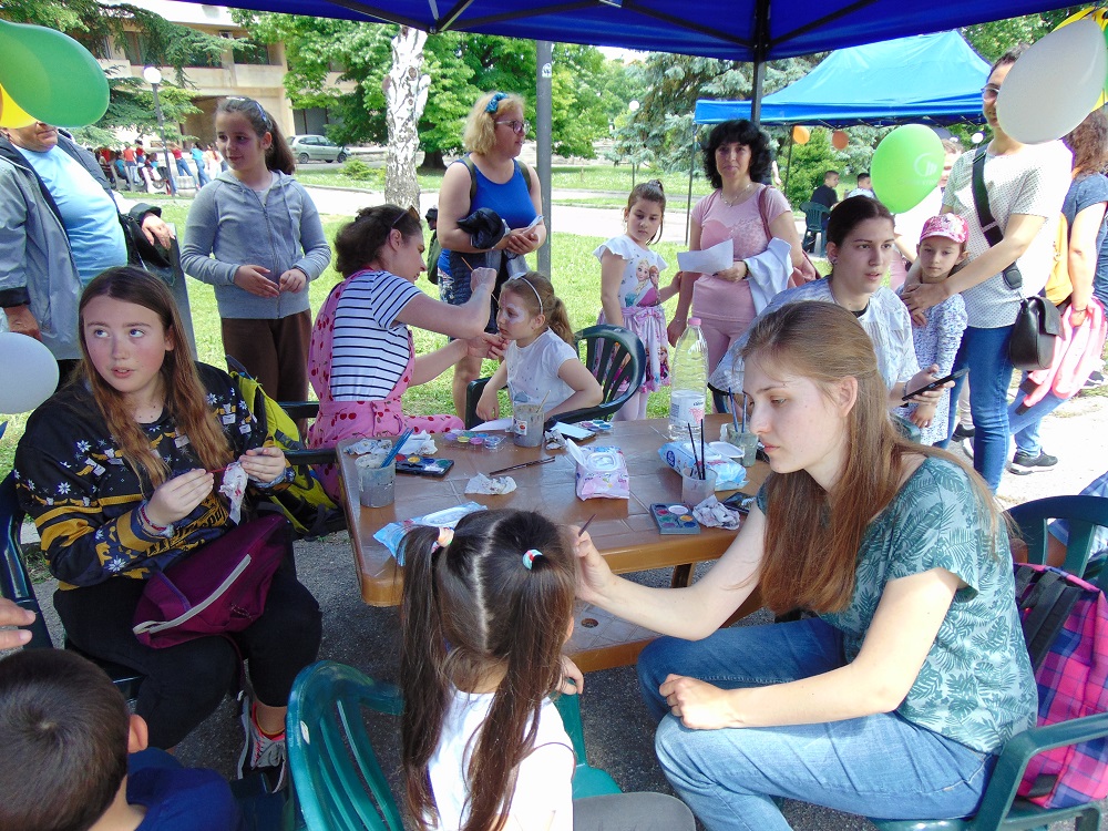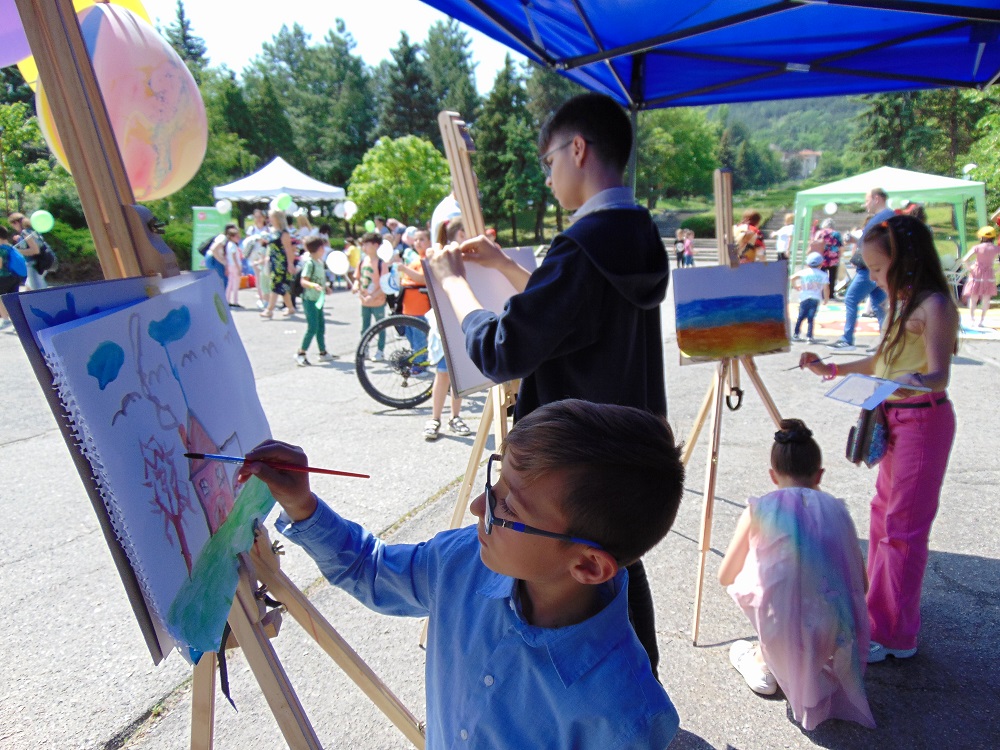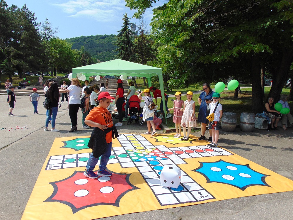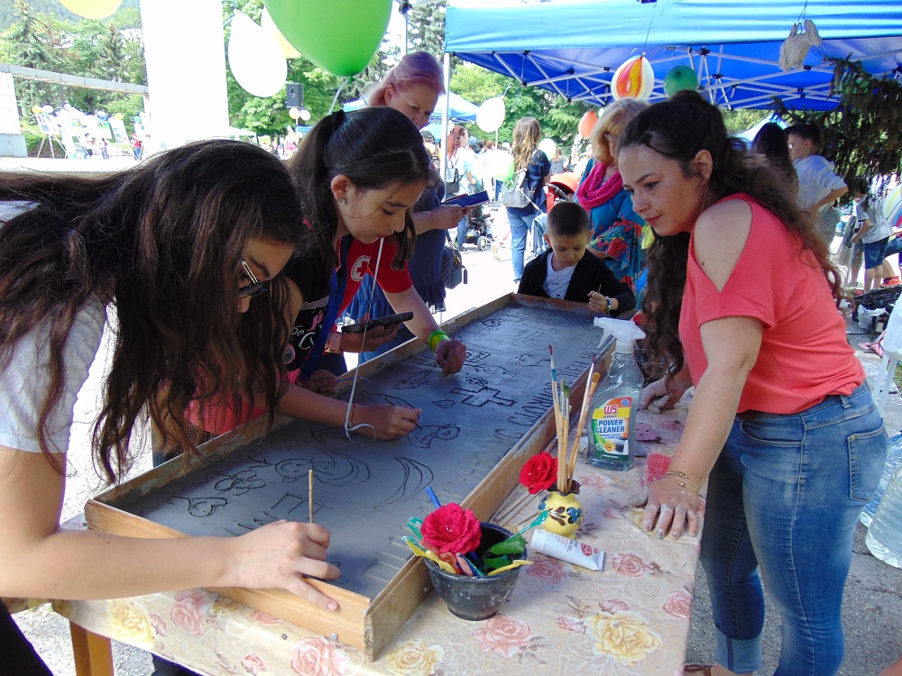 С много усмивки, детски гласове и празнично настроение се изпълни днес и паркът до общинската администрация. В художествено-творческите ателиета, които бяха подредени там, малчуганите рисуваха, оцветяваха, правиха апликации, изработваха бижута от мъниста и твориха с глина. Завидно пайсторство и сръчност показаха и възпитаниците от школата по дърворезба към ЦПЛР-ОДК „Анастас Стоянов“. На сцената на талантите малки и големи пяха, танцуваха и свириха. В парка бяха оформени кътове за игра на „Не се сърди, човече“, „Сол – пипер“, игра на Лимбо, ластик, морски шах и др. Всяко дете можеше да си направи и снимка за спомен. Беше разиграна и томбола с различни предметни награди.