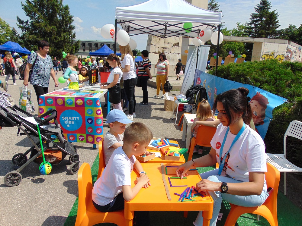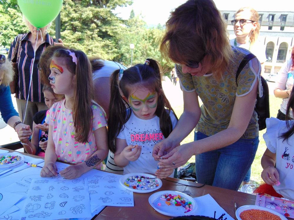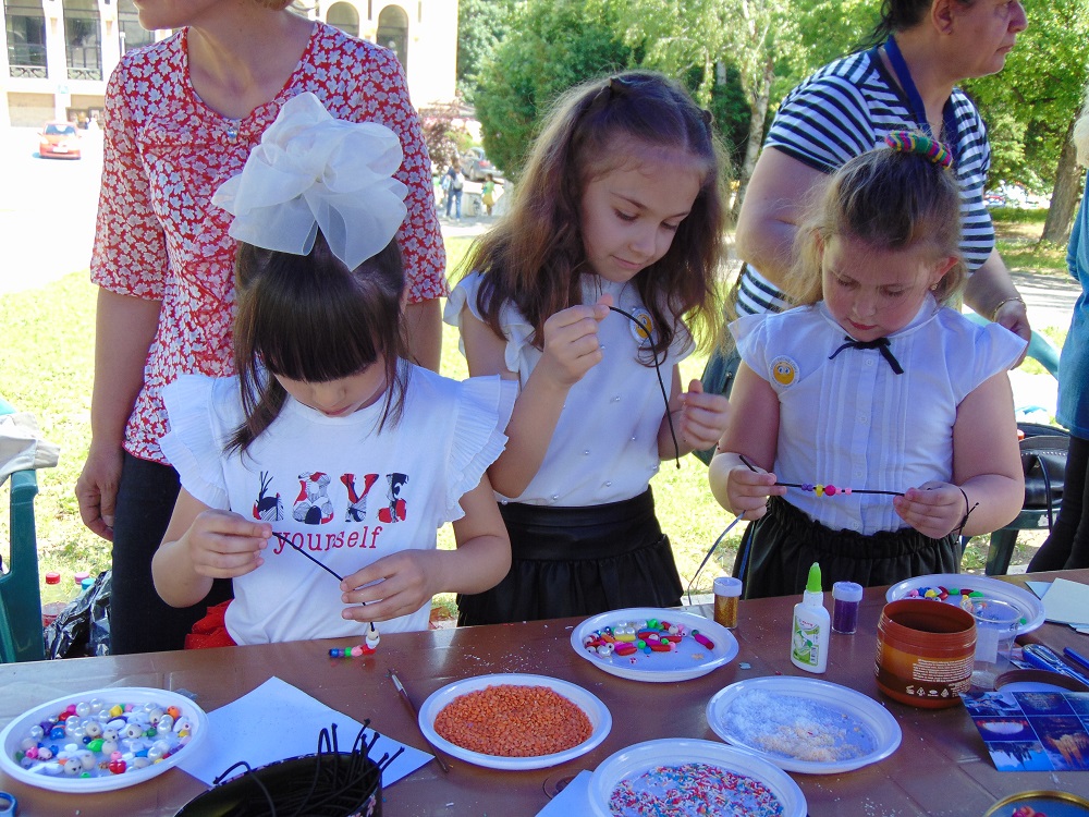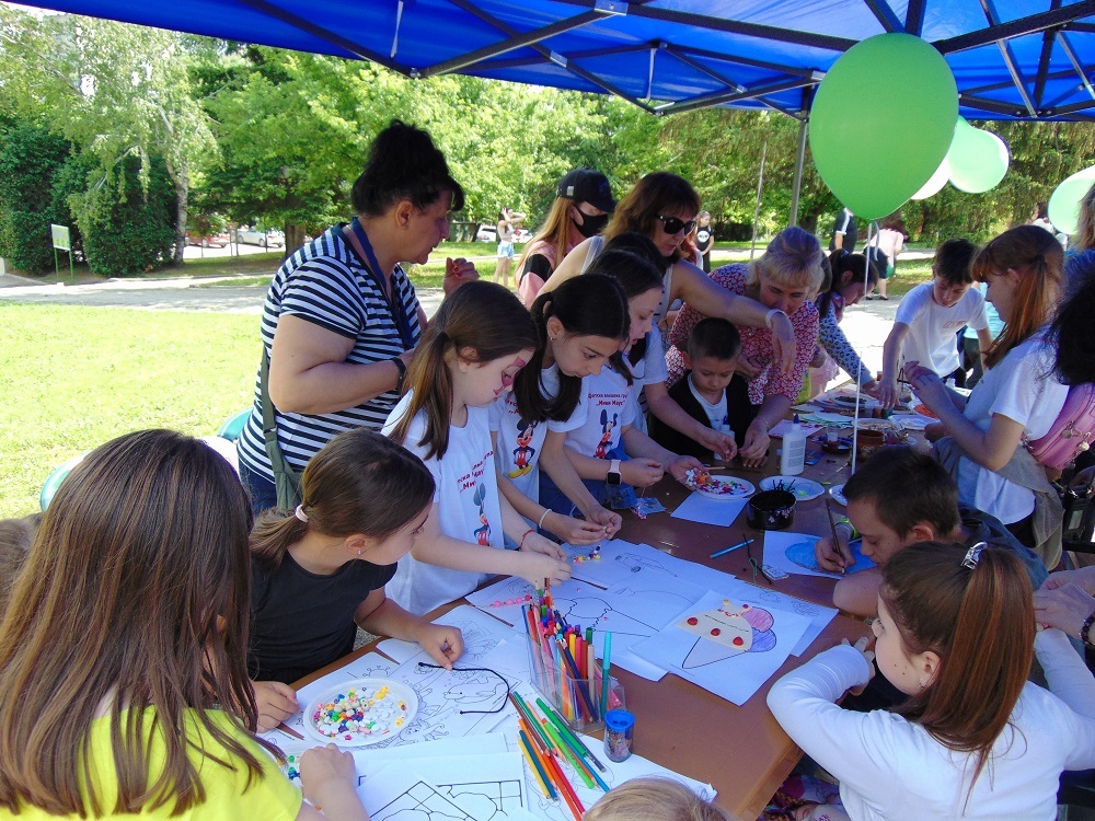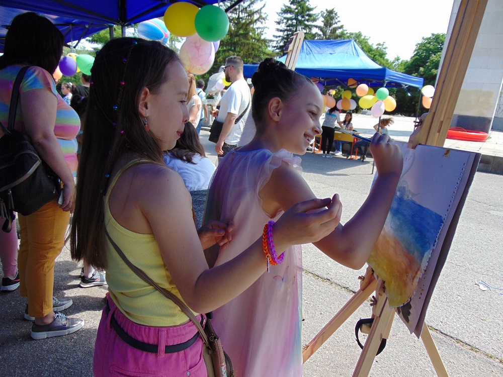 С много усмивки, детски гласове и празнично настроение се изпълни днес и паркът до общинската администрация. В художествено-творческите ателиета, които бяха подредени там, малчуганите рисуваха, оцветяваха, правиха апликации, изработваха бижута от мъниста и твориха с глина. Завидно пайсторство и сръчност показаха и възпитаниците от школата по дърворезба към ЦПЛР-ОДК „Анастас Стоянов“. На сцената на талантите малки и големи пяха, танцуваха и свириха. В парка бяха оформени кътове за игра на „Не се сърди, човече“, „Сол – пипер“, игра на Лимбо, ластик, морски шах и др. Всяко дете можеше да си направи и снимка за спомен. Беше разиграна и томбола с различни предметни награди.