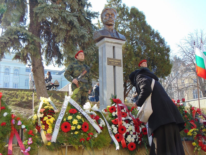Много шуменци дойдоха днес пред паметника на Васил Левски в града, за да се преклонят пред делото и саможертвата на Апостола на свободата. Ритуалът по поднасянето на венци и цветя започна в 11.00 часа на площад „Освобождение“. Рецитал „На теб, Апостоле, поклон!“ изнесоха ученици от СУ „Васил Левски“. Във възпоменателната церемония се включиха и представителни роти от Шуменския гарнизон, Градският духов оркестър „Михаил Биков“, членове на Родолюбивия комитет „Крум Страшни“.