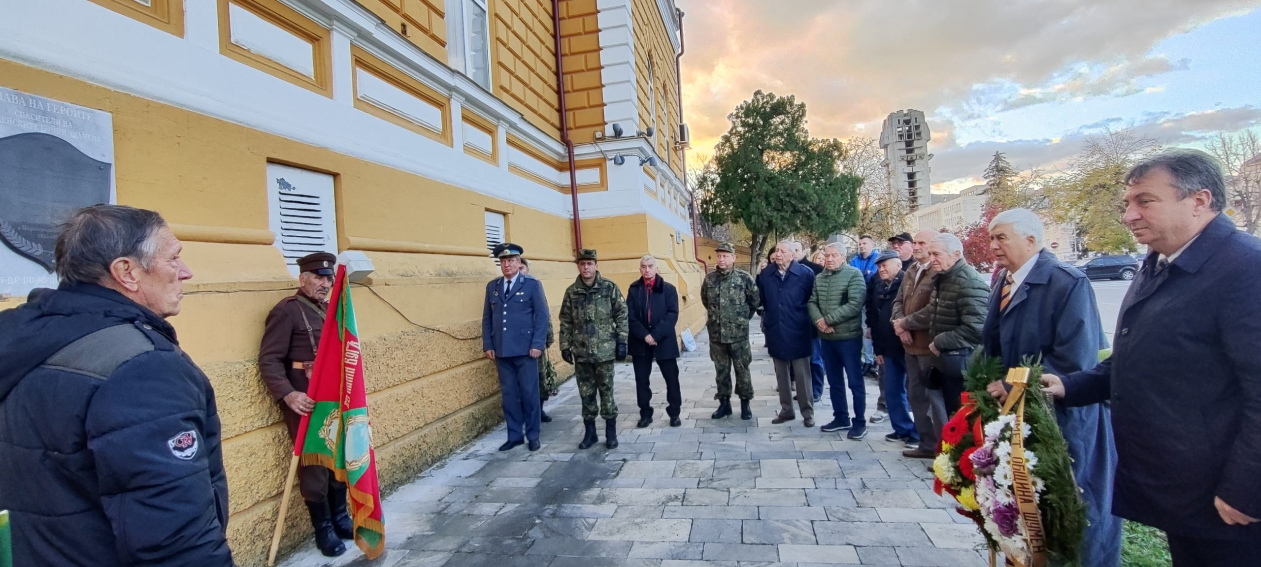Венци и цветя бяха положени и пред паметната плоча на „Спасителите на шуменските бойни знамена“ на стената на Военния клуб в Шумен, на която са изписани имената на доброволеца Димитър Н. Гугов, редник Иван Тотев Цонев и подполковник Марин Тодоров Куцаров.
