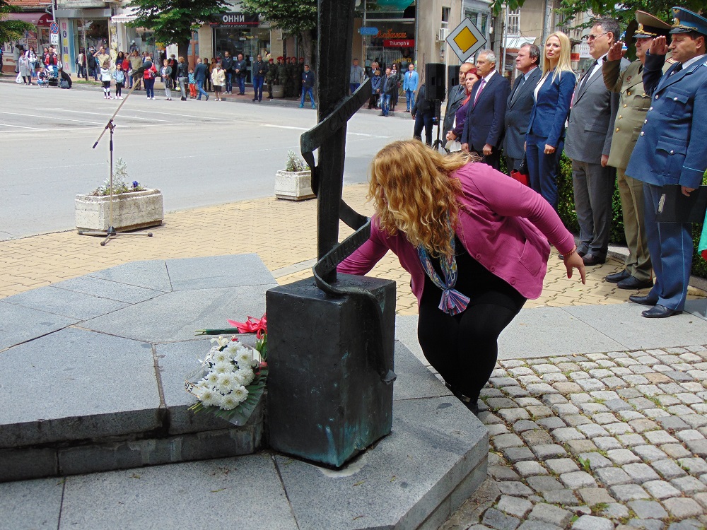 С ритуал по поднасяне на венци и цветя пред Паметника на загиналите във войните шуменци днес беше почетено делото на Христо Ботев и на всички герои, дали живота си за свободата и независимостта на България. Точно в 12.00 часа шуменци спряха и изчакаха на място под звуците на сирените в знак на почит към паметта на загиналите. Малко след това започна церемонията на площад „Кристал“. В нея се включиха представителни роти на Шуменския гарнизон, курсанти от Факултета „Артилерия, ПВО и КИС“ и Градският духов оркестър „Михаил Биков“.