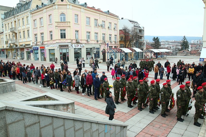 Ритуалът по поднасяне на венци и цветя започна в 11.00 часа на площад „Освобождение“ с участието на представителни роти от Шуменския гарнизон, Градския духов оркестър „Михаил Биков“, членове на Родолюбивия комитет „Крум Страшни“.