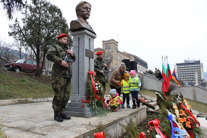 В словото си директорът на Профилираната езикова гимназия Димо Георгиев посочи, че Левски ще остане завинаги в българското национално съзнание с примера си за патриотична всеотдайност, с очарованието на горд и смел водач, с обаянието на човек, който е прежалил себе си в името на народа, за да види Отечеството си свободно. „Васил Левски е светлият образ в нашата история. Той преобърна времето и го направи свое, доказвайки, че народът носи у себе си жаждата за свобода и справедливост. Левски постави интересите на народа пред всичко друго. Той ратуваше за чиста и свята република. Да мерим думите и делата си с неговите, това за нас днес е обществен морал и лична норма на поведение“, призова Георгиев.
