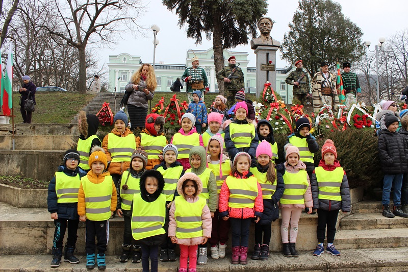 С рецитал, посветен на Левски, във възпоменателната церемония се включиха гимназисти от ПЕГ „Никола Вапцаров“, много ученици от училищата в общината и деца от детските градини на Шумен.