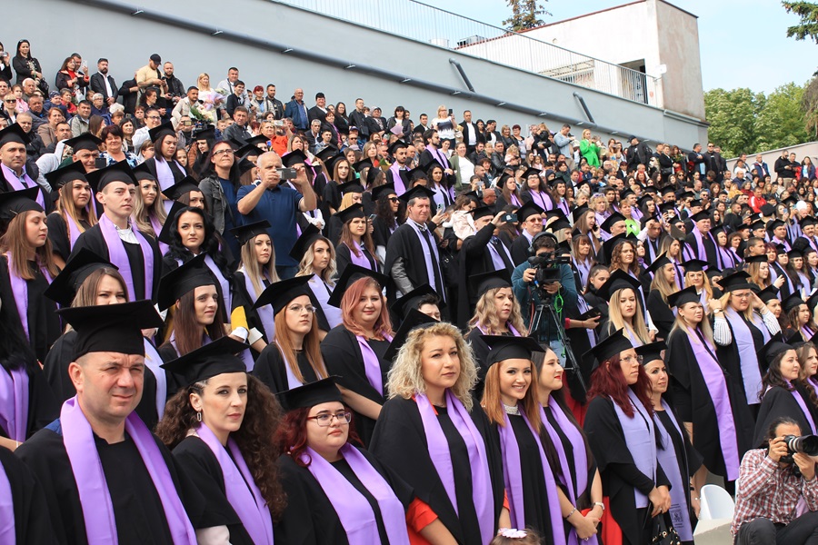 В навечерието на празника на светите братя Кирил и Методий 24 май, изпратихме абсолвентите на Шуменския университет „Епископ Константин Преславски“ с тържествена церемония в Летния театър. Кметът проф. Христо Христов и ректорът на университета проф. Витанова отправиха поздрави и пожелания към завършващите. „Пожеланията ми са кратки: Не спирайте да се учите! Не се отказвайте да опитвате отново и отново! Не се отказвайте и се борете за осъществяване на мечтите си! Само така ще изградите себе си като щастливи и удовлетворени личности.“, каза кметът проф. Христов. Последва клетва на абсолвентите към родната им Алма матер и връчване на дипломите.