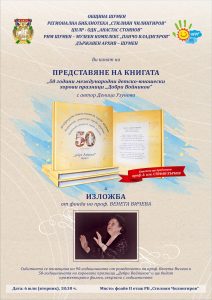 Книгата „50 години международни детско-юношески хорови празници „Добри Войников“ с автор Деница Узунова и изложба от фонда на проф. Венета Вичева ще бъдат представени в Регионалната библиотека „Стилиян Чилингиров“. Събитието ще се състои на 6 юли, вторник, от 18.30 часа във фоайето на библиотеката. То е посветено на 90-годишнината от рождението на проф. Венета Вичева и 50-годишнината на хоровите празници „Добри Войников“ – първият хоров фестивал в България.