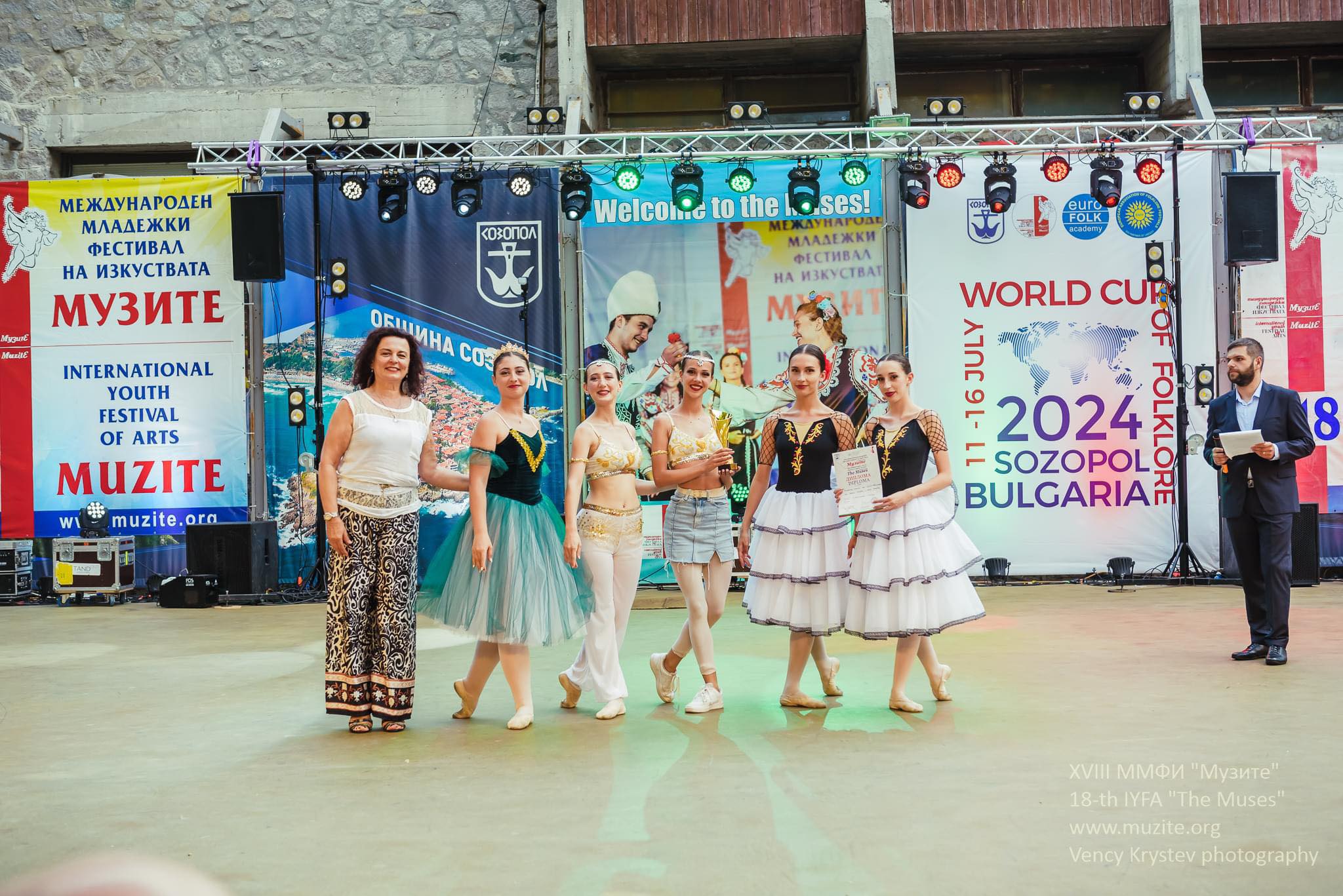 - за солово изпълнение на Кристин Георгиева с вариация на Аспиция от балета „Дъщерята на фараона“ – 1-во място;