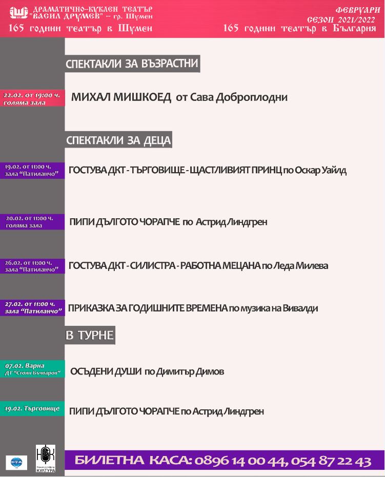 Програма на шуменския театър през февруари