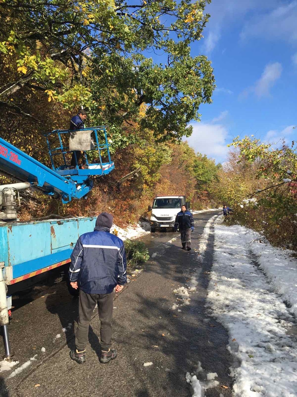 Работници от общинското предприятие „Паркове и обредна дейност“ почистваха днес провиснали и нападали клони, които затрудняваха движението по пътя Шумен – Новосел. В момента машини на фирма „Автомагистрали – Черно море“ разчистват и снежните навявания по пътното платно, за да не се получат заледявания при падане на температурите през нощта.