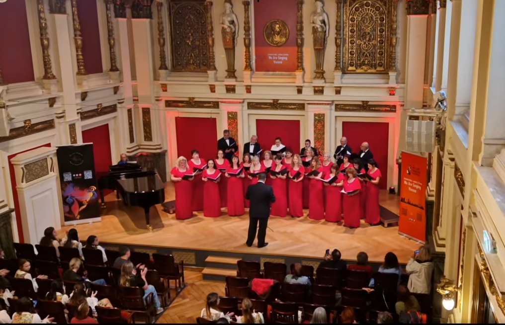 Редом с други хорове, сред които и академични, съставът се представи със съвсем различна програма с изпълнения на популярни творби по време на втория си концерт, който се състоя в красивата зала Едгар хол в австрийската столица.
