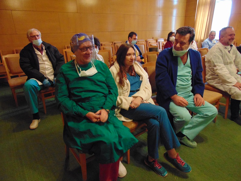 Любомир Христов благодари на медиците за тяхната безрезервна отдаденост и професионализъм и ги увери, че със средства от кампанията „Помогни сега“, материални дарения и с финансовата подкрепа на общината до момента са осигурени защитни маски, шапки, облекла, шлемове, предпазни очила, ръкавици, спирт, сапуни и дезинфектанти за всички здравни заведения в общината. „Имаме достатъчно количества и за следващите няколко седмици, макар никой да не е наясно все още колко дълго ще продължи тази ситуация. Всички материали се съхраняват в специално подготвени за целта складове,“ каза Христов.
