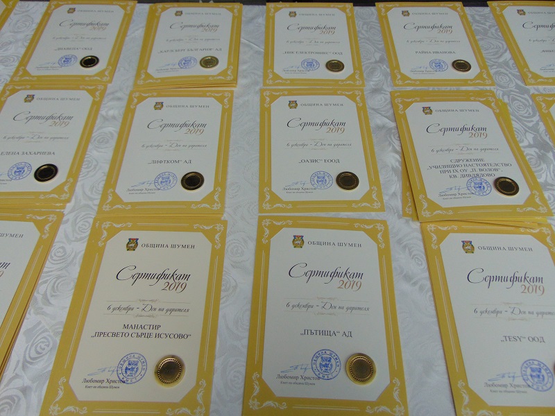 Кметът Любомир Христов благодари на представителите на фирми, сдружения и граждани, спомогнали през 2019 година да се реализират значими обществени каузи в града. На церемонията бяха връчени сертификати с плакети на 60 от дарителите. Традиционната среща се проведе в основния ресторант на Гранд хотел „Шумен“.