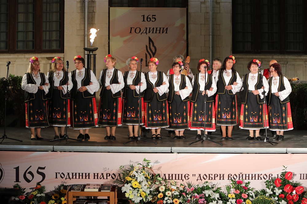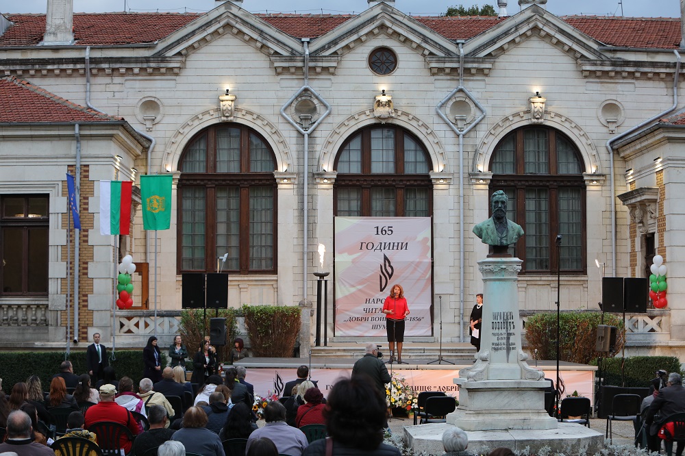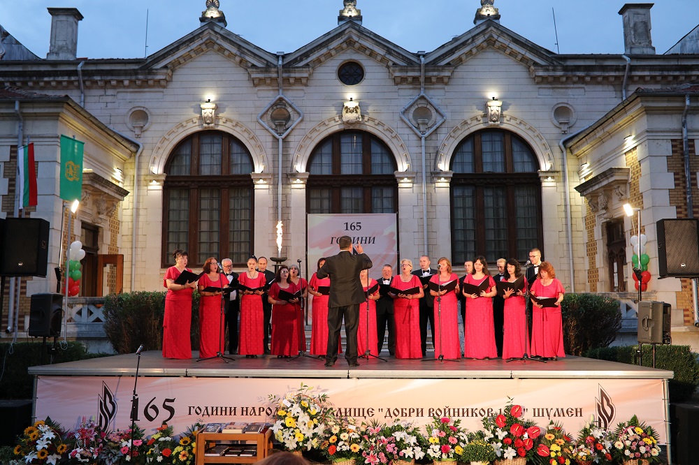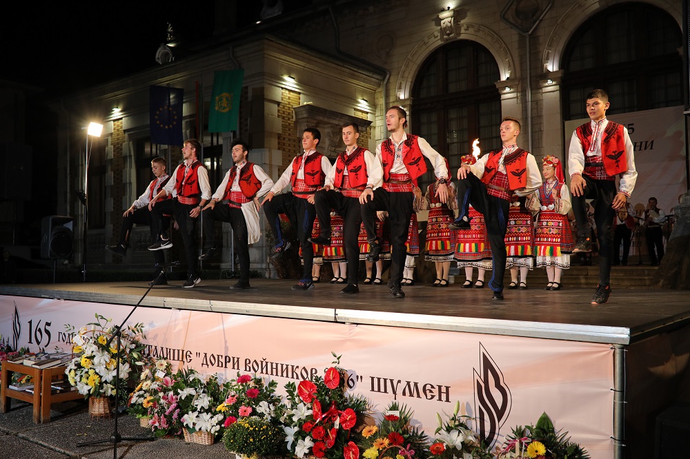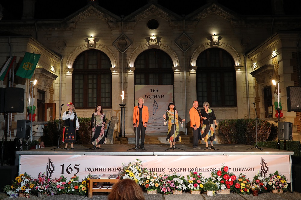 С церемония по издигане на националния флаг, знамето на Шумен, на ЕС и запалване на читалищния огън започна празничната вечер, посветена на 165-тата годишнина от основаването на Народното читалище „Добри Войников-1856“.