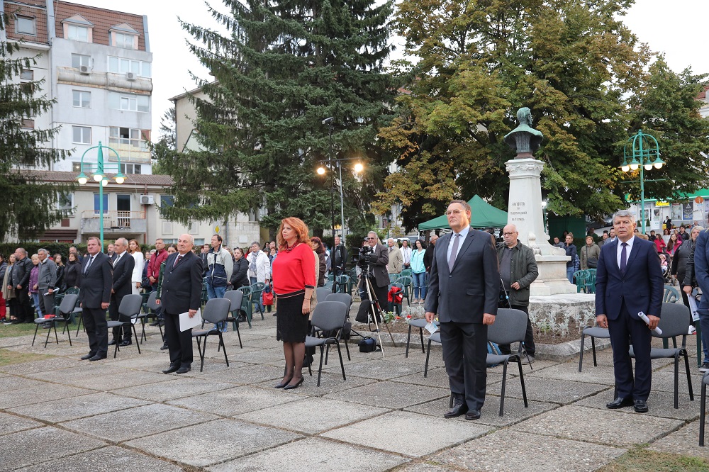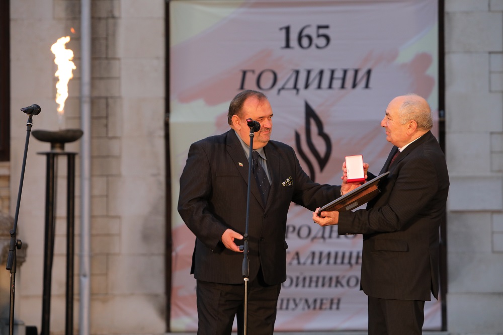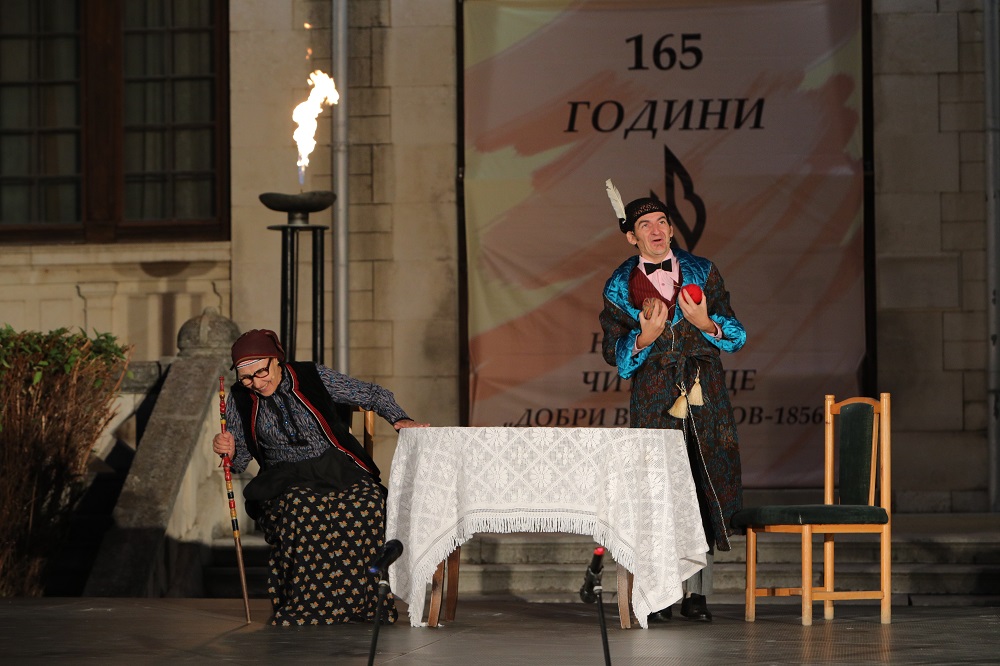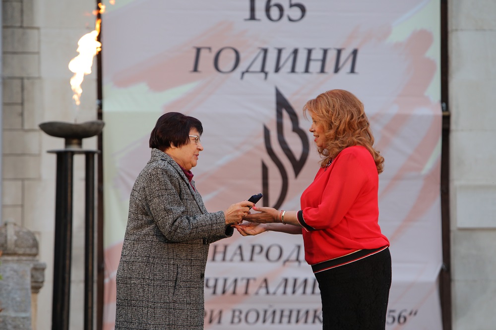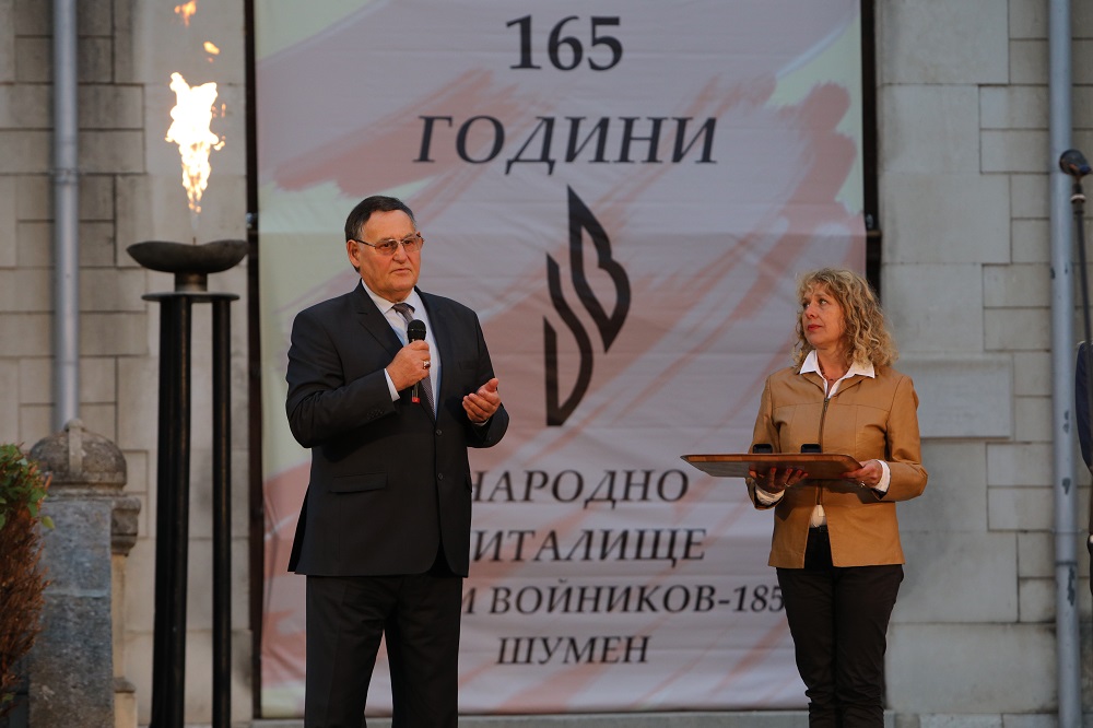 С церемония по издигане на националния флаг, знамето на Шумен, на ЕС и запалване на читалищния огън започна празничната вечер, посветена на 165-тата годишнина от основаването на Народното читалище „Добри Войников-1856“.