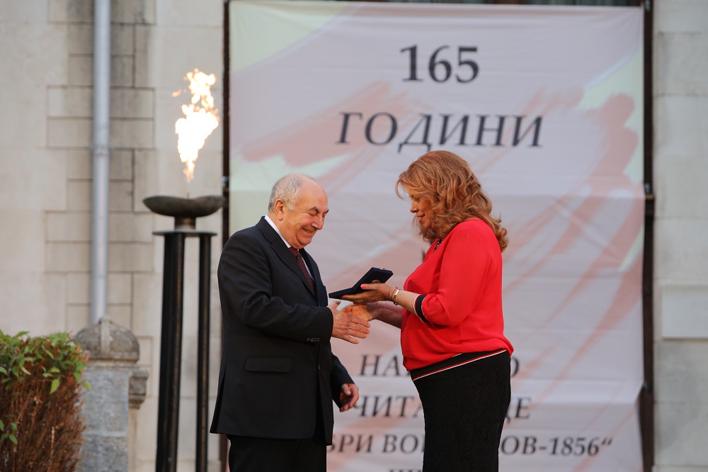 В знак на признание за професионалните им достижения и за тяхната активна обществена дейност Илияна Йотова връчи плакет на вицепрезидента на проф. Кина Вачкова, Детелина Палазова, ДТА „Пъргавелче“ и на ръководителя на ансамбъла Чавдар Чанов. Председателят на Съюза на народните читалища Николай Дойнов връчи юбилеен плакет и Златна звезда на НЧ „Добри Войников-1856“ – 165 години общонародно читалищно дело.