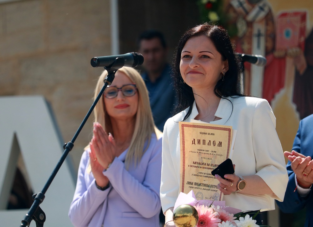 След това на тържествена церемония пред сградата на Община Шумен кметът Любомир Христов и председателят на Общинския съвет Ася Аспарухова връчиха наградите на Шумен за постижения в областта на образованието и науката за 2022 г. Учители, ученици, студенти и преподаватели бяха отличени за своя принос и значими успехи в просветното дело. С почетно звание „Носител на златна значка на град Шумен“ беше удостоена проф. д-р Кина Вачкова, дългогодишен преподавател в ШУ „Еп. Константин Преславски“. Отличието й се присъжда за значителен принос за развитието на образованието, науката и културата в община Шумен, както и за активната й обществена дейност и във връзка с нейната 80-годишнина.