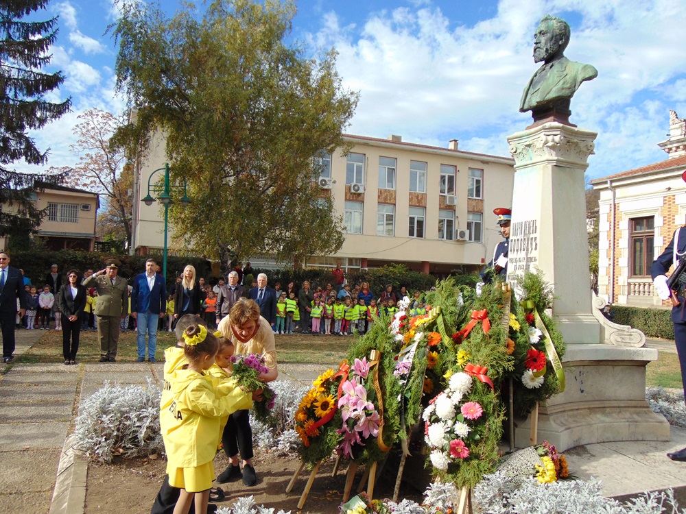 С общоградско тържество пред паметника на Нанчо Попович в Шумен днес беше отбелязан 1 ноември – Деня на народните будители. За да почетат делото на просветители и книжовници, допринесли за възраждането на българското самосъзнание, в градинката пред Народното читалище „Добри Войников-1856“ се събраха много граждани, деца и ученици. Слово пред присъстващите произнесе Аксиния Маринова, ученичка в 12 клас от СУ „Сава Доброплодни“. „Днес си спомняме за всички възрожденци, книжовници и дейци на борбата за независима българска църква. За стотиците достойни люде на перото, за онези непокорни и горди българи, които учеха как се обича България и как се умира за нея. Не трябва да изоставяме идеалите, за които са се борили предците ни, а да ги отстояваме в настоящето и да ги предаваме на бъдещите поколения, защото както казва Апостолът на свободата Васил Левски – времето е в нас и ние сме във времето“, каза Маринова.