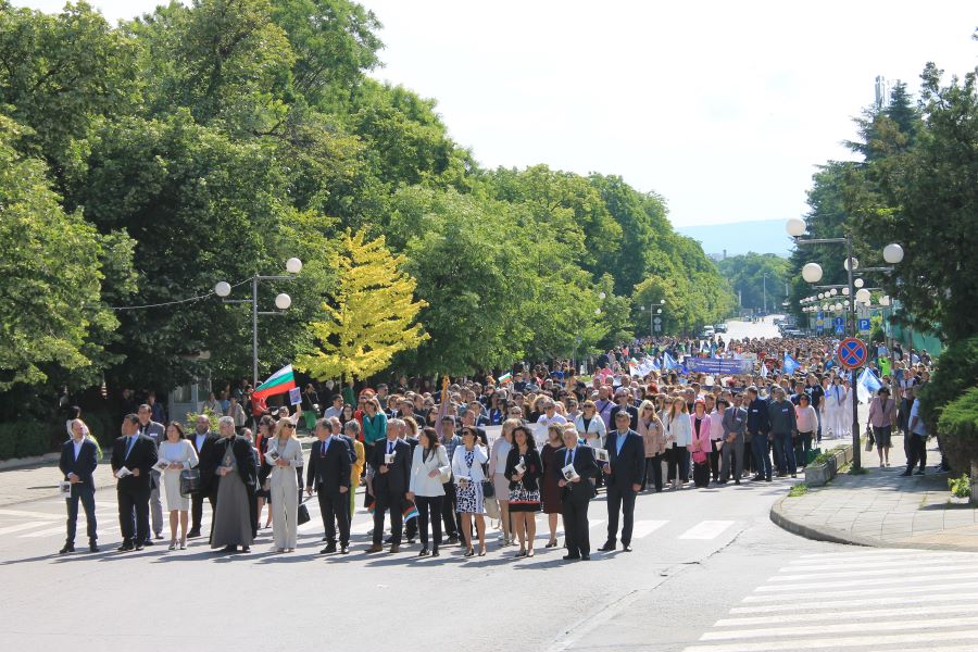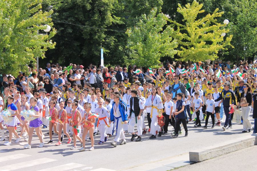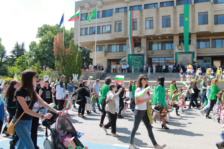 Денят-символ на българската духовност и на стремежа към знание чрез слово, наука и образование, бе отбелязан с празнично шествие, започнало от пл. „Кристал“. Множество представителни блокове на образователи и културни институции в града ни извървяха пътя до сградата на общината начело с иконата на Светите братя Кирил и Методий. Под звуците на химна на 24 май „Върви, народе възродени“, тържественото шествие водеха кметът проф. Христо Христов, областният управител проф. Добромир Добрев, председателят на Общинския съвет Ася Аспарухова, заместник-кметове и общински съветници.