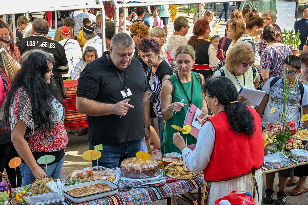 Изобилие от сладки и солени изкушения, баници, торти, кексове, вкусно приготвени традиционни ястия със зеленчуци и месо се състезаваха за майсторското отличие в изложбата базар „Кулинарно пътуване във времето“. Жури с председател д-р Ивелина Ефтимова, етнолог и преподавател в ШУ „Еп. Константин Преславски“ отличи най-добрите гозби.