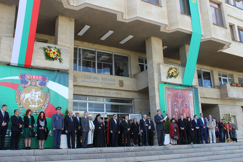 Кметът Любомир Христов поздрави шуменци. В обръщението си към гражданите и гостите на тържеството той изрази убеждението си, че в ден като днешния е важно да отдадем своята почит към предците си, но и да предадем на децата си гордостта от миналото и да ги научим да обичат своя град. „Любовта към града е отговорност. Отговорност, която ни прави единни. И тогава всички заедно, независимо от възрастта, професията и общественото си положение можем да бъдем полезни на своя град.”