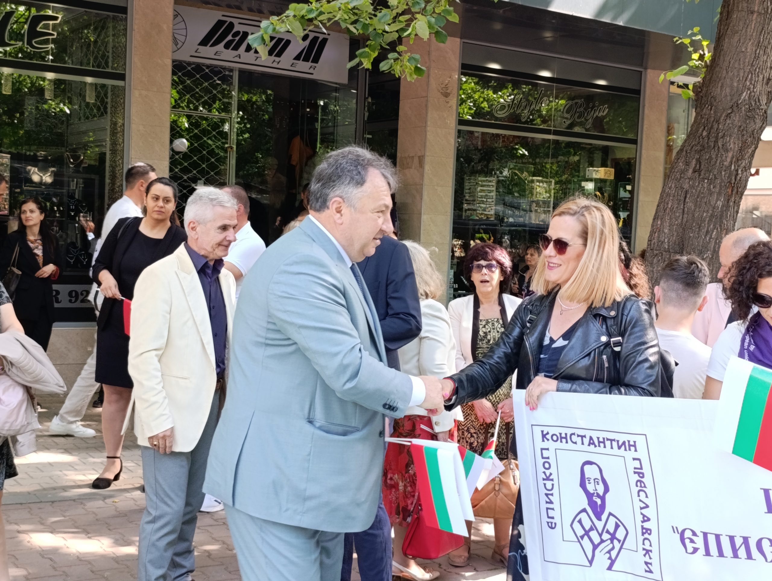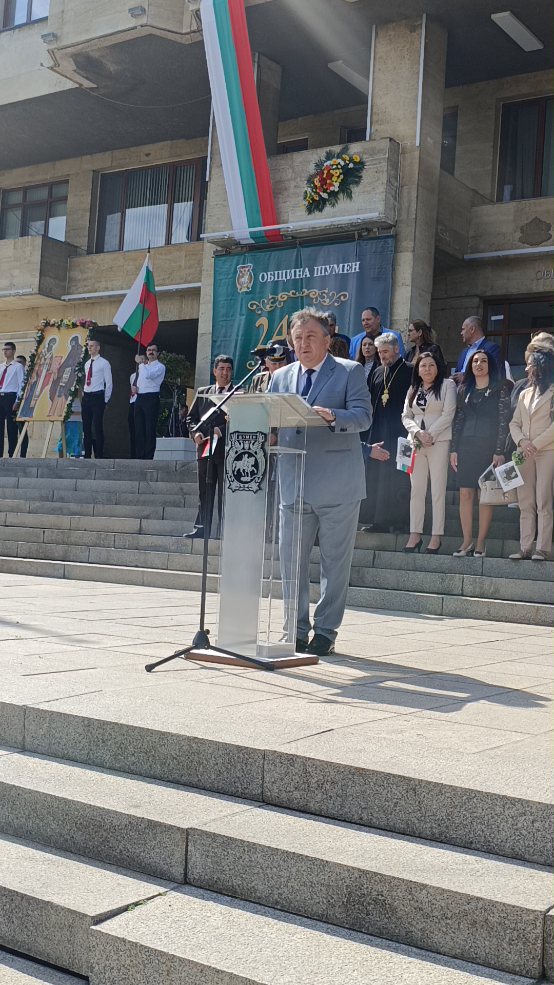 С тези думи кметът на община Шумен проф. Христо Христов поздрави участниците в тържественото шествие по повод 24 май – Ден на българската азбука, просвета и култура и славянската книжовност. Шествието премина по централна градска част от пл. „Кристал“ до сградата на Общината.
