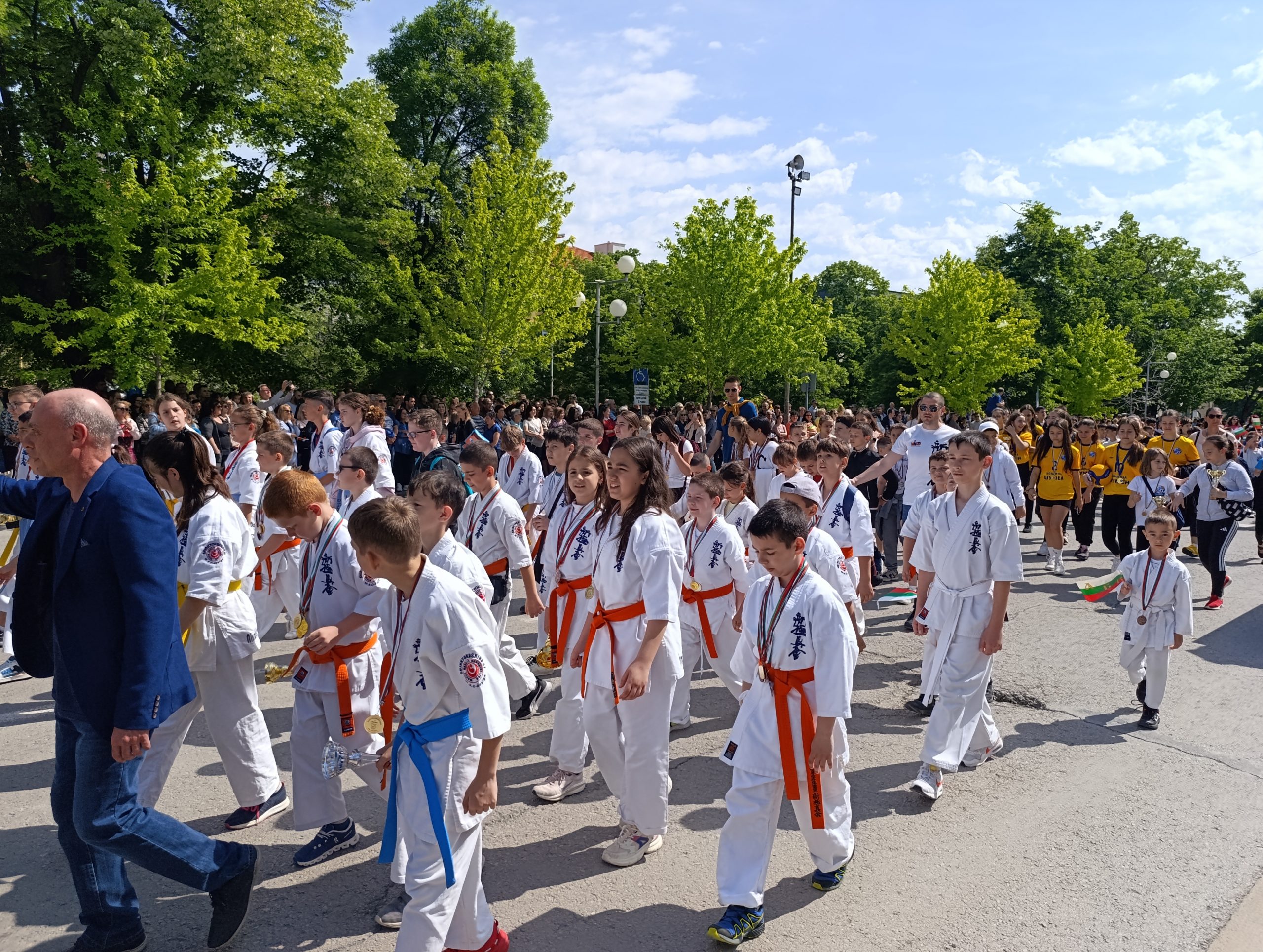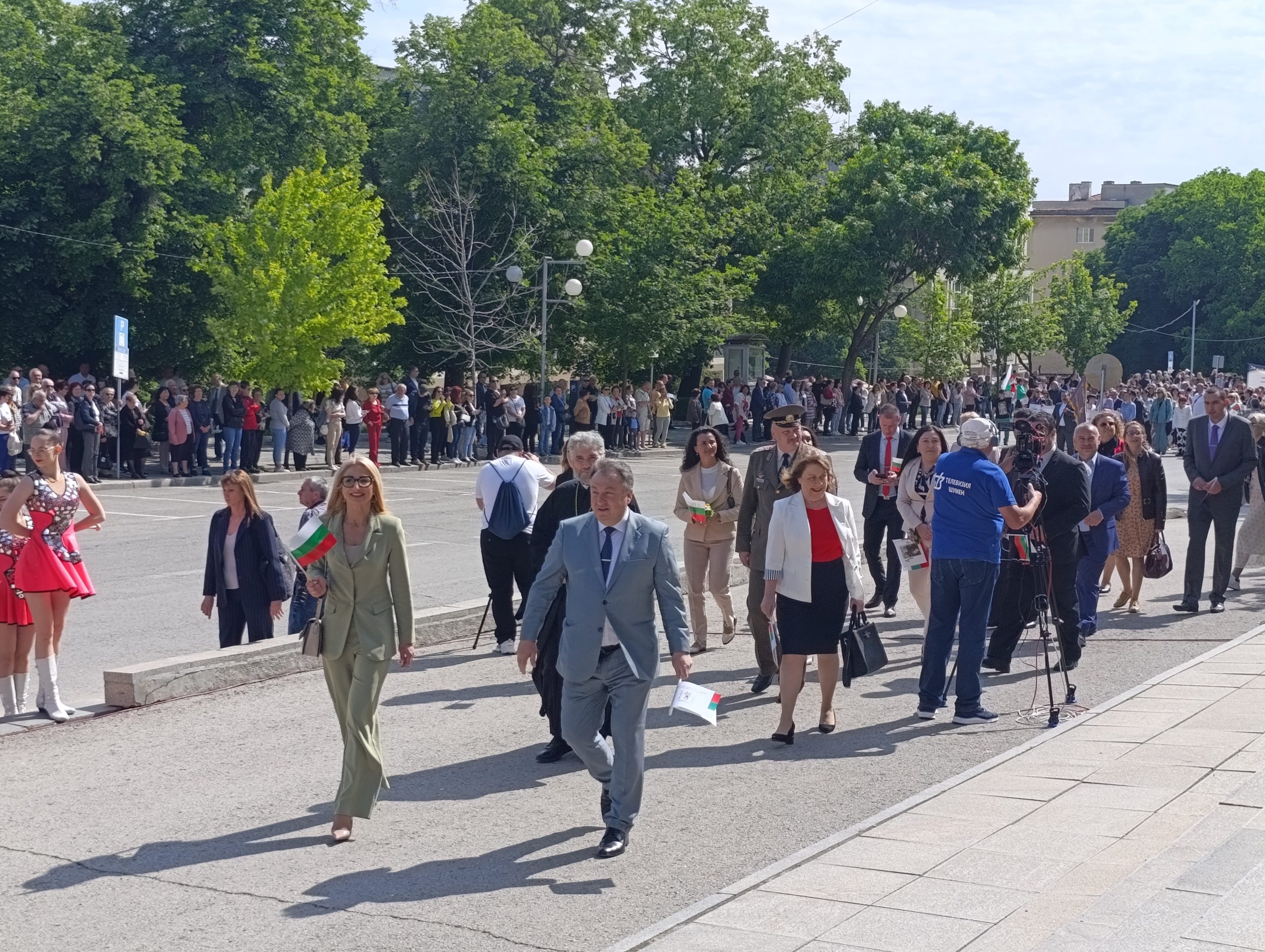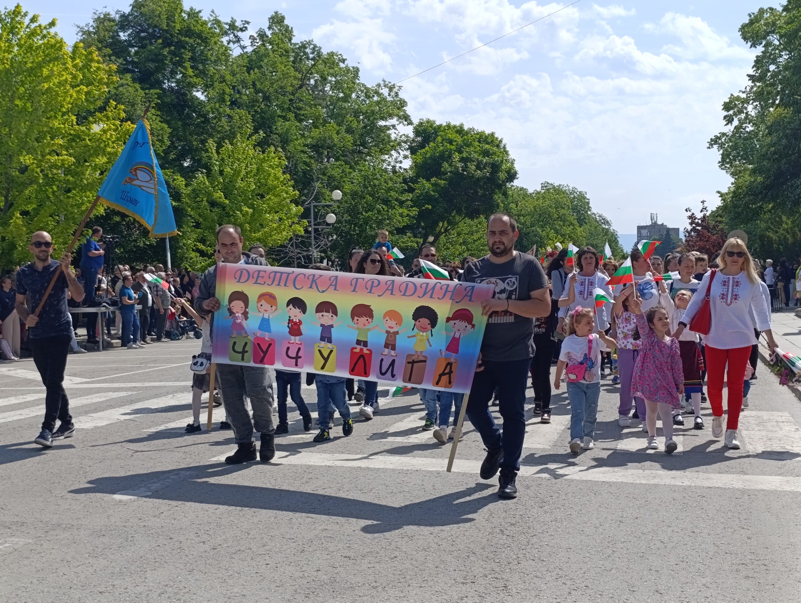 В празничното шествие се включи цялото общинско ръководство, общинските съветници, представители на културни и други институции, детските градини, училищата и университетите в града, спортните школи и клубове, читалищата и танцовите състави, мажоретните формации, стотици граждани.