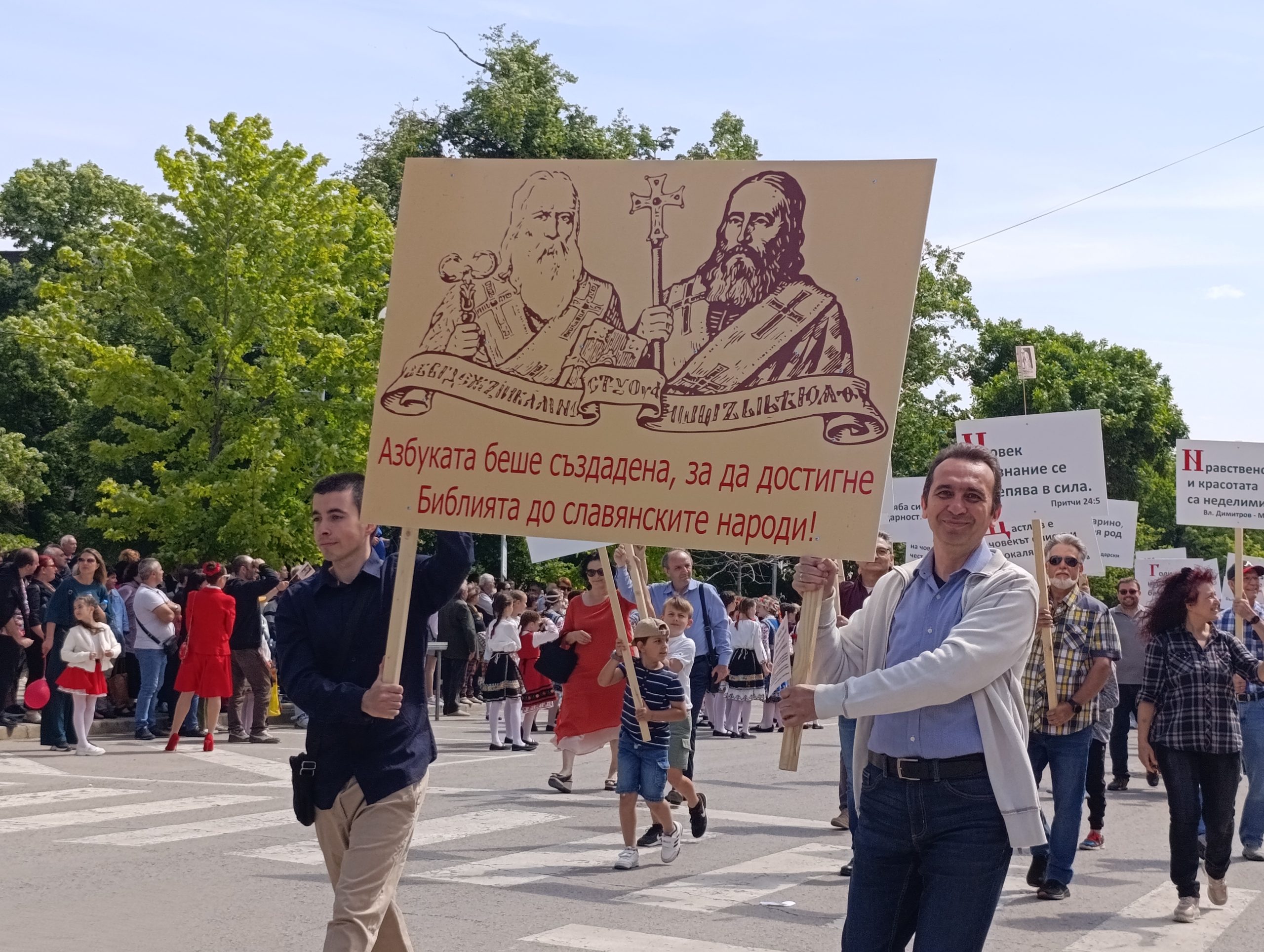 Над 4000 горди шуменци днес, чрез това шествие, се прекланяме и гордеем с делото на светите братя Кирил и Методий. В последните дни наградихме светлите умове на Шумен – носителите на Наградата за образование и наука, отличниците на випуска, героите на Шумен – първенци от олимпиади и състезания. Героите на знанието. Днес ние награждаваме нас самите. Това шествие е нашата награда. Наградата да сме силна и сплотена общност. Да вървим по пътя на знанието, в светлината на Златния век на Симеон Велики, след ликовете на Кирил и Методий. Заедно.